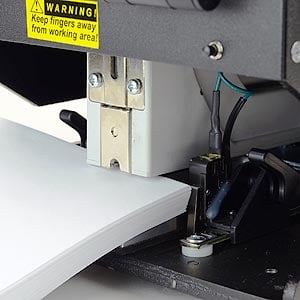 Use Model SU-100N for reports, documents, computer and laser printouts, booklets, form pads, coupon and checkbooks, legal, tax and accounting documents and much, much more! Wide opening, dual adjustable backstops and electronic foot switch assure fast, accurate, neat staple positioning.